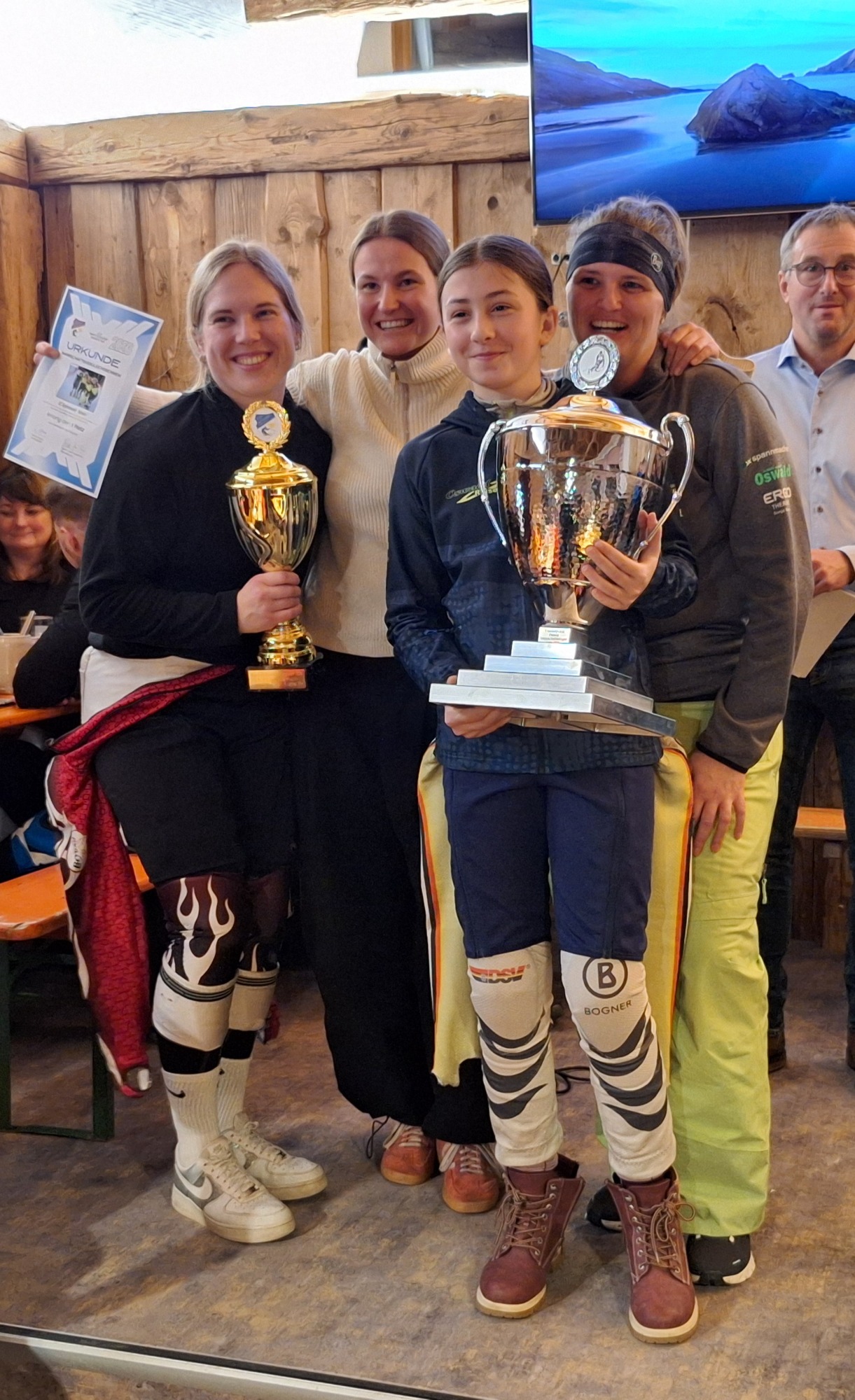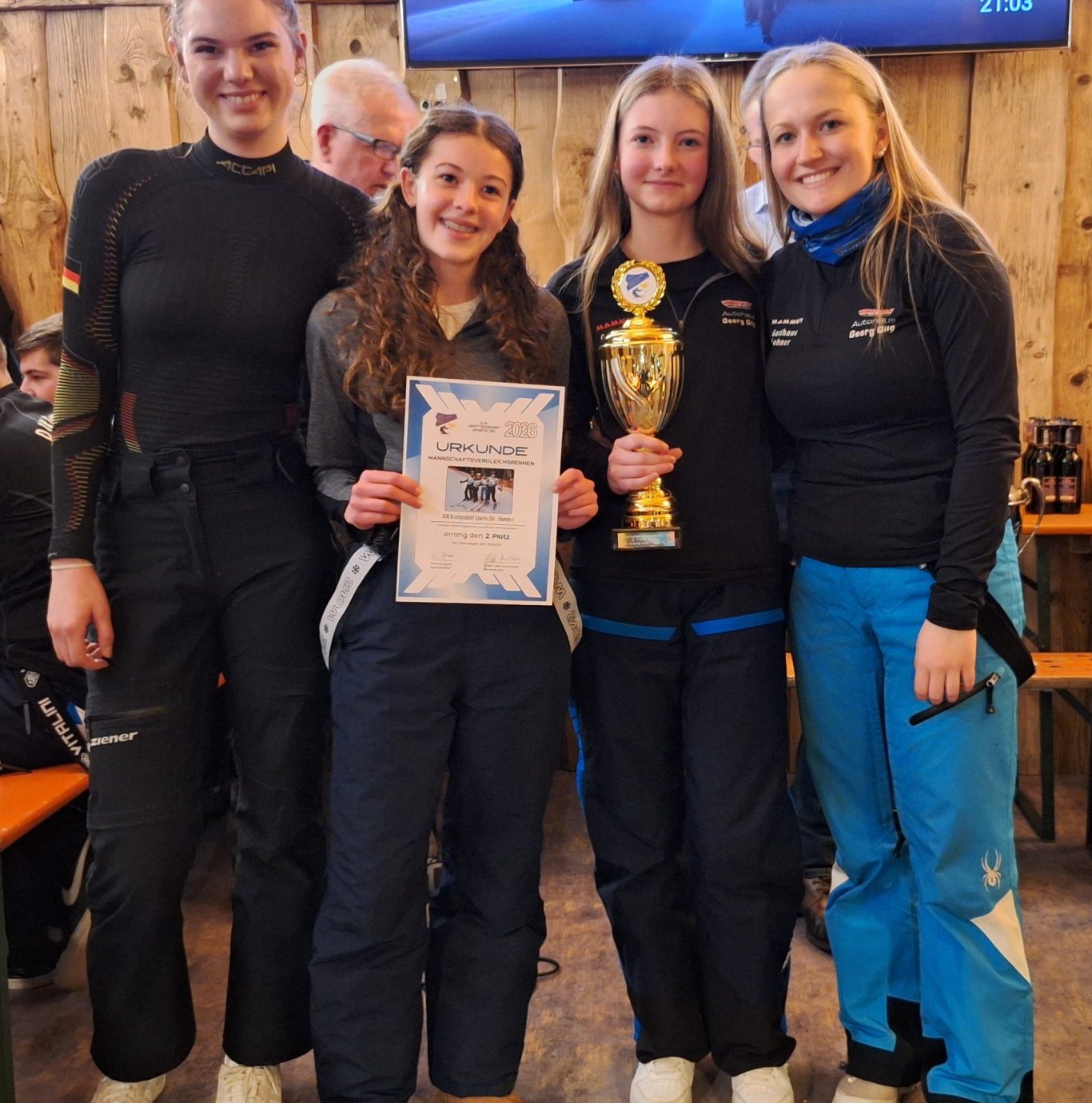 Am Samstag den 25. Januar 2025 fand das Mannschaftsvergleichsrennen bei bestem Frühlingswetter am Steinberglift statt. Ausrichter war dieses Jahr die Sparte Ski vom ASV Loh. Der fair gesteckte Riesenslalomkurs muss in 2 gewerteten Durchgängen bewältigt werden. Im Anschluß des Rennens fand die Siegerehrung in der vollgefüllten Steinberghütte statt. Unser Skiclub war mit 6 Mannschaften am Start. Dabei wurden eines der besten Ergebnisse bei dieser Rennserie erzielt. Die Seniorinnen belegten in den Besetzung Christiane Egner, Elisabeth Laggerbauer, Astrid Liebl und Melanie Hamberger den 1. Platz. Ebenfalls errangen unsere Senioren den Sieg. In der Besetzung Thomas und Christian Ritzinger, Konrad Egner und Josef Liebl Haushofer holten sie sich den Cup. Ganz nah waren unsere Damen allgemein am Gesamtsieg dran. „Nur“ 0,44 Sekunden fehlten nach 6 gewerteten Läufen zum späteren Sieger SC Sonnenwald. Das herausragende Ergebnis wurde von Johanna Laggerbauer, Lea Egner, Magdalena Bauer und Bettina Egern erzielt. Die Herren allgemein belegten mit einer hervorragenden Mannschaftsleistung und knapp hinter den Zweit- und Drittplatzierten den 4. Rang in der Besetzung Stefan Zettl, Stephan Bauer, Timo Egner und Markus List. Die zweite Seniorenmannschaft belegte den 5. Platz in der Besetzung Sigi Weikl, Willi Zettl, Michael Laggerbauer und Josef Kraus. In der Herrenklasse allgemein belegte unsere zweite Mannschaft den 10. Platz in der Besetzung Marco Ritzinger, Simon Laggerbauer, Felix und Bernhard Duschl.