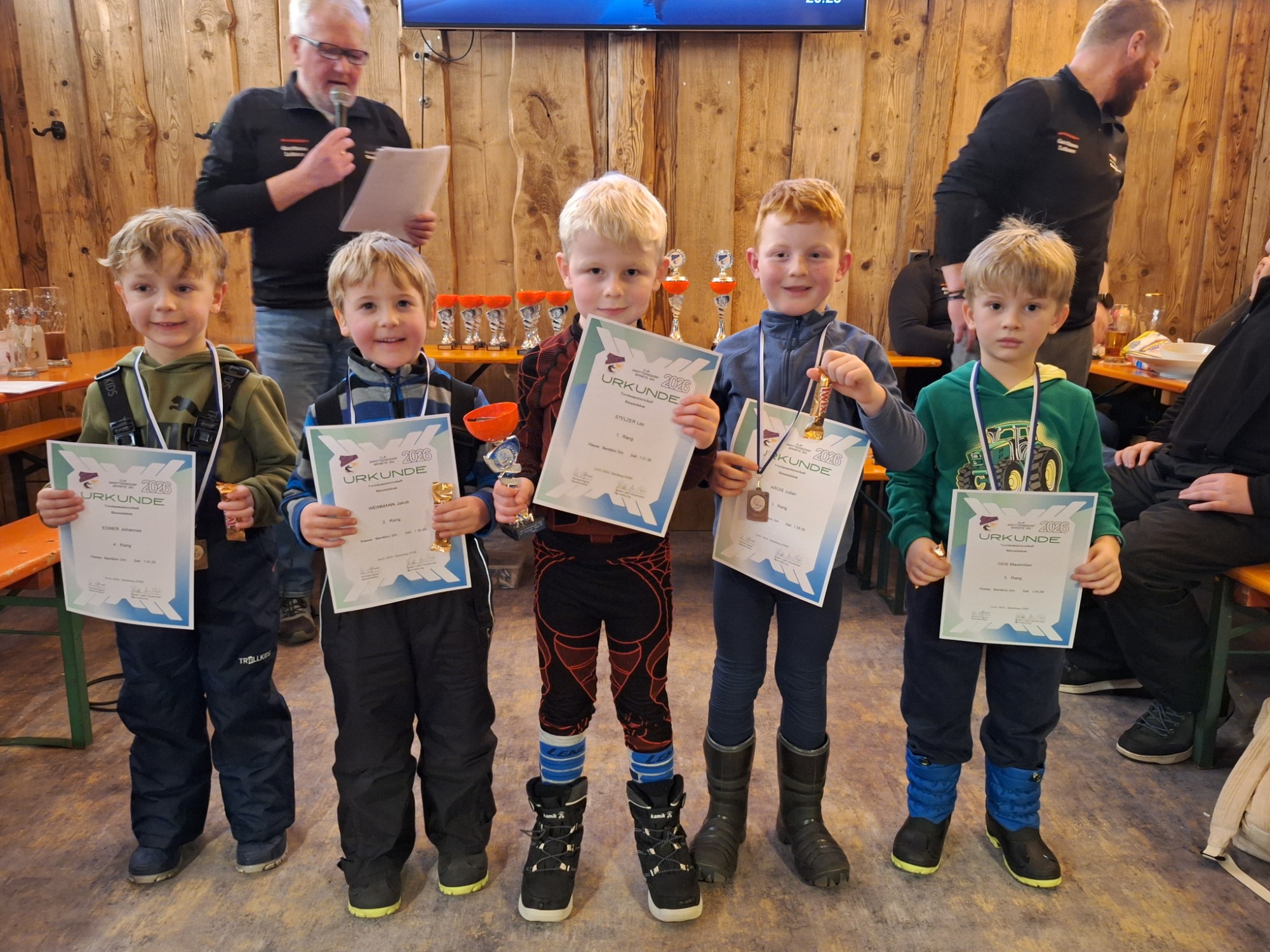 Bambino 2 männlich: Jonas Nickl (DJK Grattersdorf Sparte Ski) 44,73 Bambino 3 männlich: Leo Stelzer (DJK Grattersdorf Sparte Ski) 42,01 Schüler 7 weiblich: Rosalie Prebeck (DJK Grattersdorf Sparte Ski) 48,01 Schüler 7 männlich: Hannes Berger (DJK-SV Altreichenau) 32,72 Schüler 8 weiblich: Lina Stelzer (DJK Grattersdorf Sparte Ski) 37,02 Schüler 8 männlich: Jonas Kroiß (DJK Grattersdorf Sparte Ski) 37,68 Schüler 9 weiblich: Annie Wensauer (DJK SG Schönbrunn) 30,89 Schüler 9 männlich: Michael Nickl (DJK Grattersdorf Sparte Ski) 32,04 Schüler 10 weiblich: Maria Wellner (DJK Grattersdorf Sparte Ski) 31,91 Schüler 10 männlich: Maximilian Wimmer (DJK-SV Altreichenau) 32,67 Schüler 11 weiblich: Franziska Wimmer (DJK-SV Altreichenau) 31,94 Schüler 11 männlich: Daniel Weber (DJK Grattersdorf Sparte Ski) 33,31 Schüler 12 weiblich: Hannah Weiß (DJK Altreichenau) 34,82 Schüler 12 männlich: Alexander Bernauer (DJK Grattersdorf Sparte Ski) 31,85 Schüler 13 weiblich: Luisa Berger (DJK-SV Altreichenau) 28,97 Schüler 13 männlich: Lukas Nickl(DJK Grattersdorf Sparte Ski) 28,87 Schüler 13 m Gast: Felix Wensauer (DJK-SG Schönbrunn) 25,148 Schüler 14 weiblich: Josefine Binder (DJK S2C) 30,32 Schüler 14 männlich: Leon Kotik (DJK-SV Hartkirchen) 30,64 Jugend 16 weiblich: Laura Ritzinger (DJK Grattersdorf Sparte Ski) 26,28 Jugend 16 männlich: Simon Lippe (DJK-SV Hartkirchen) Jugend U21 weiblich: Mira Weindl (DJK S2C) 29,13 Damen 51: Isabella Schmidt (DJK-SV Altreichenau) 26,61 Damen 21 Lea Egner Diözesanmeisterin 2026 (DJK Grattersdorf Sparte Ski) 25,61 Herren 61: Willi Zettl (DJK Grattersdorf Sparte Ski) 26,63 Herren 56: Maximilian Reiter Diözesanmeister 2026 (DJK-SV Altreichenau) 22,83 Herren 51: Christian Ritzinger (DJK Grattersdorf Sparte Ski) 23,64 Herren 41: Michael Berger (DJK-SV Altreichenau) 27,07 Herren 36: Markus Holler (DJK S2C) 26,45 Herren 21: Maximilian Gottlieb (DJK-SV Hartkirchen) 22,99